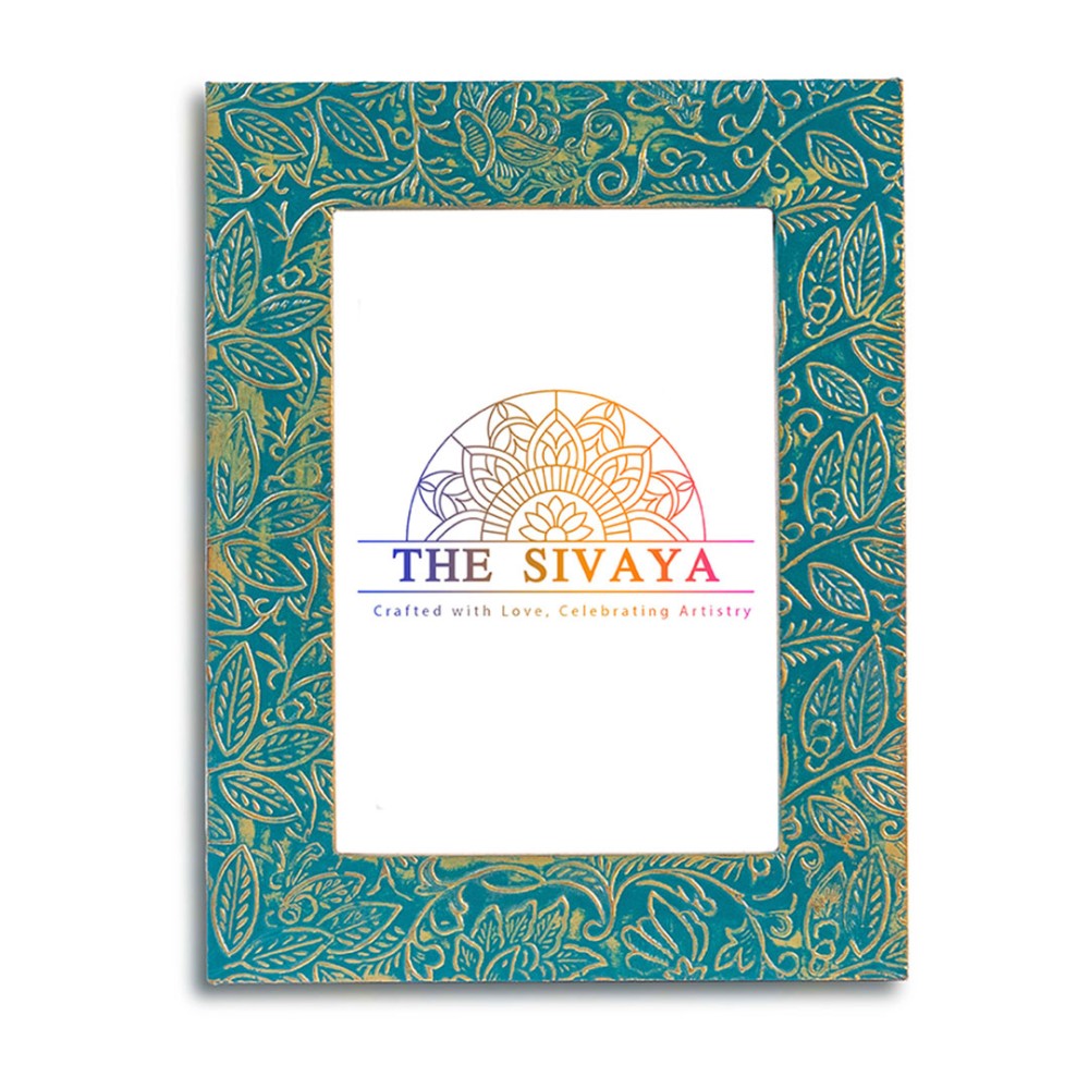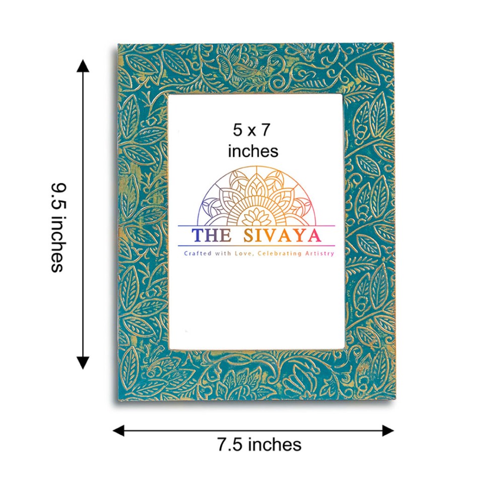 Hand Crafted Metal Sheet Impressioned And Painted Photo Frame